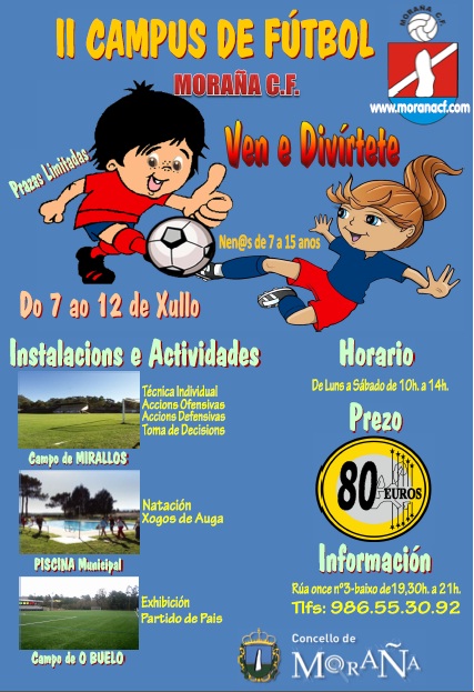 Ponse en marcha a segunda edición do campus do Moraña C.F. Dende o 7 ao 12de Xullo ata o día 12 do mesmo mes, os rapaces e rapazas podrán disfrutar das actividades e xogos levadas a cabo durante todo o campus.