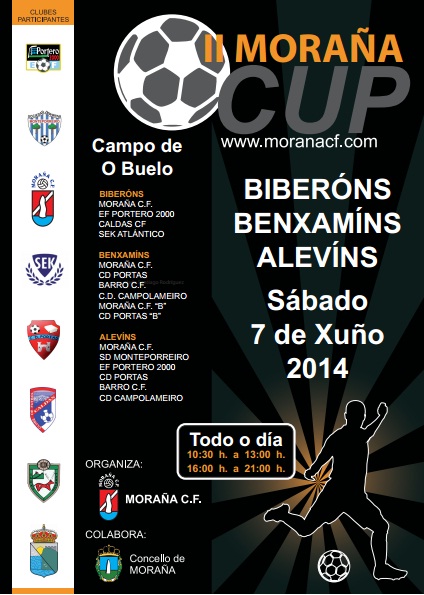 O próximo Sábado 7 de Xuño disputarase no campo de O Buelo a MORAÑA CUP 2014. Neste torneo de Fútbol 8 competirase nas categorías de Alevín, Benxamín e Biberón, con participación en todas elas do Moraña C.F.
