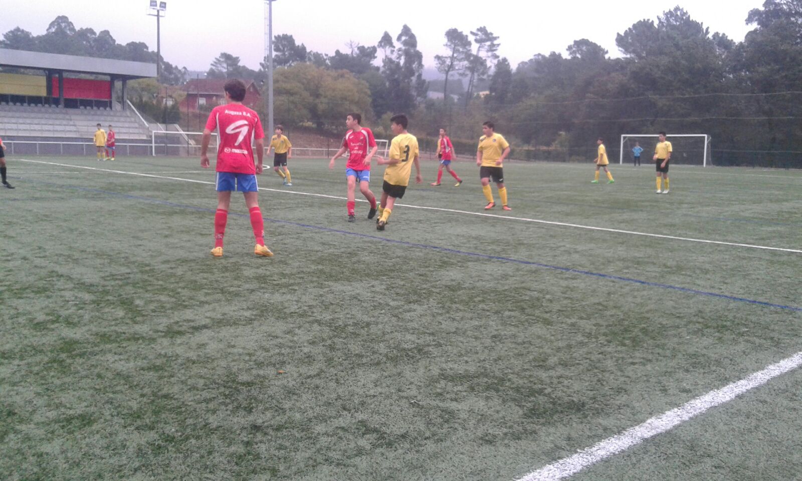 Tralo paso polos vestiarios, os nosos saíron cunha marcha máis, e acadaron o empate no 62, obra de Pablo Fraga que aproveita o rexeite do porteiro tras un forte disparo de Domi. Parecía que o encontro ía a pecharse en empate, pero por unha vez, no último suspiro os Infantiles rescataron dous puntos case co pitido final. Repetiron neste gol os protagonistas do segundo: centro de Rubén Souto, remate de Domi, rexeite do porteiro e Pablo Fraga que no minuto 80 facía o definitivo 3-2. Victoria moi importante, puntos que saben moi ben polo sufridos e paso adiante dos infantiles nesta liga. A seguir así!!