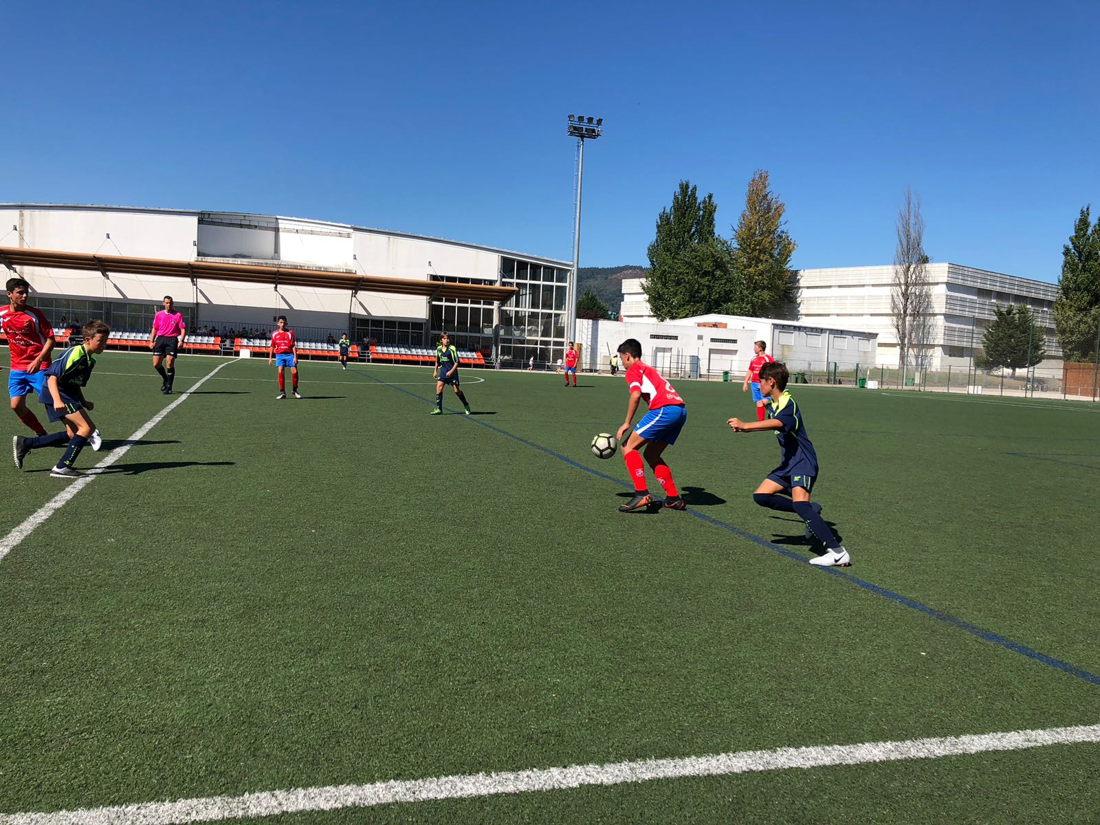 Primeiro encontro do Alevín de F11 no campo do Manuel Jiménez ante o Arosa. E primeira experiencia de moitos dos xogadores deste plantel en fútbol 11, ao que teñen que ir adaptándose paulatinamente. Sen prisa pero sen pausa, este grupo ten que ir medrando e collendo as novas medidas para ir avanzando. Moito ánimo!